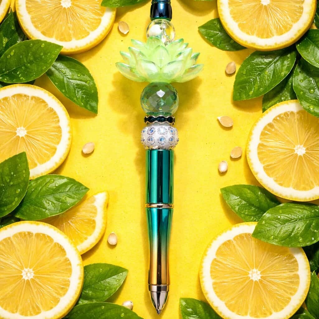 Handgefertigter Kugelschreiber zweifärbig in Türkis/Gold metallic